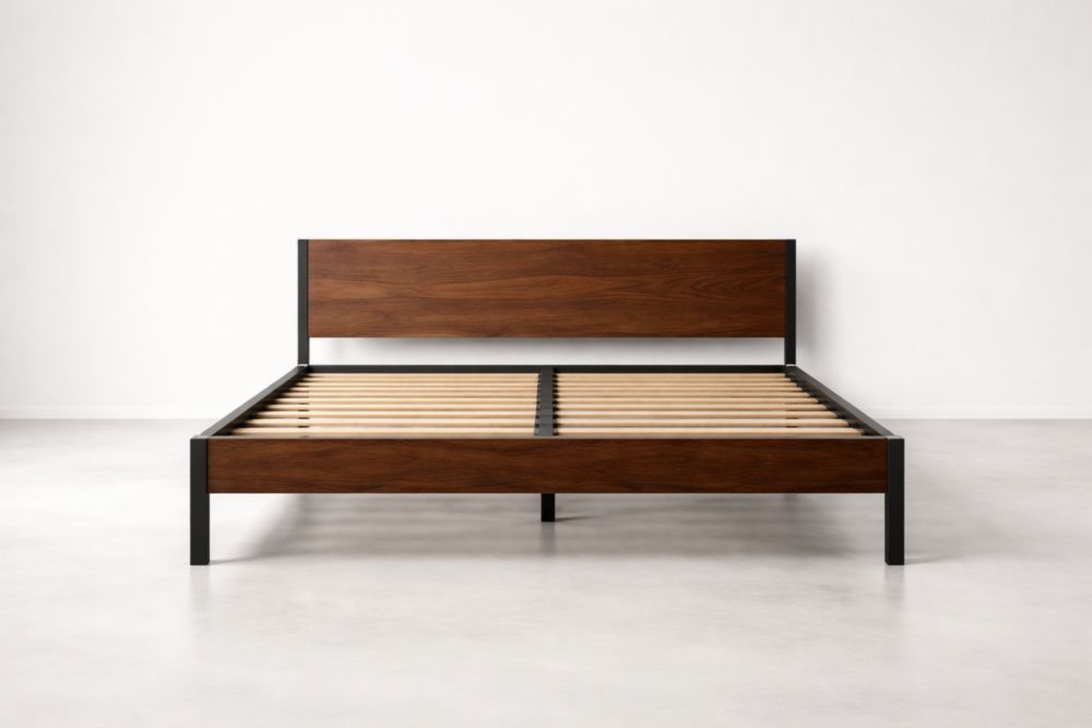 Matériaux principaux : bois massif de noyer,verre miroir, tabouret avec rembourrage en tissu.